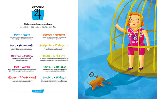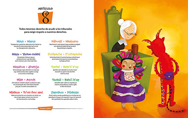 En este libro incluimos el texto de la Declaración en forma simplificada en español y diez lenguas indígenas mexicanas, para ayudar a la comprensión de los derechos humanos entre los niños y las niñas. Cada uno de los treinta artículos se presenta de manera clara y sencilla acompañado de una atractiva, colorida e ingeniosa ilustración.